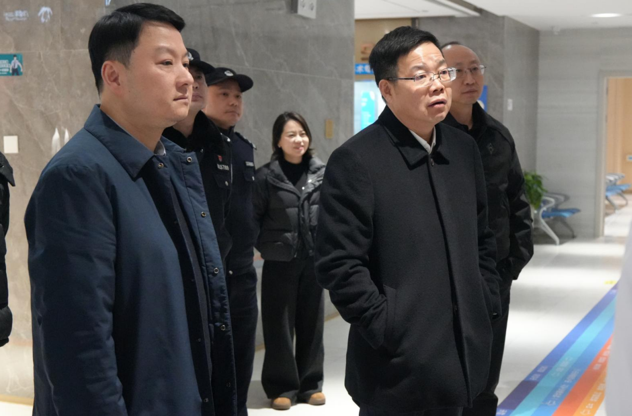 程栋院长全程陪同讲解,向调研组详细介绍医院情况。王卫安副书记一行实地检查了我院安检安防设施及应急处突单元备勤值守情况,细致询问了医院在安全生产责任落实、医疗安全管理、后勤安全保障等方面的具体工作与措施。