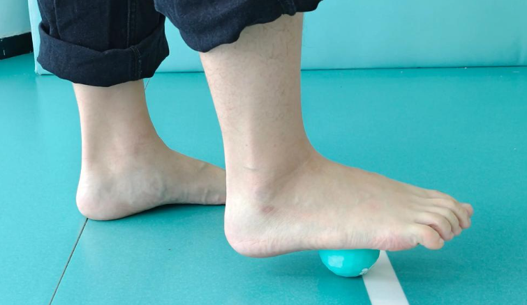 滚球按摩:用脚踩网球或筋膜球来回滚动,放松紧张的足底筋膜 。